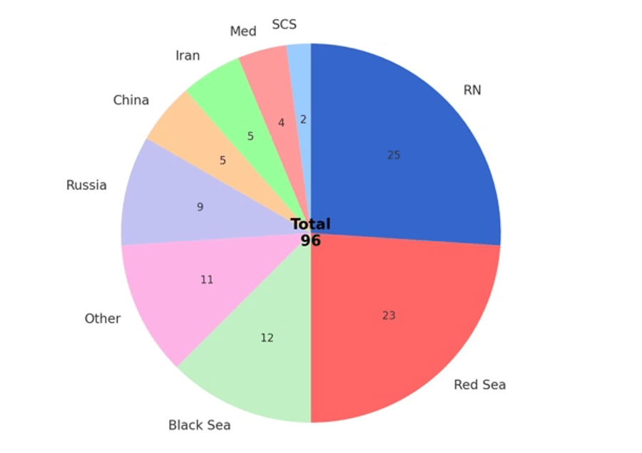 …with RN, Red Sea and Black Sea dominating (although readership on Red Sea articles has noticeably waned throughout the year). I wrote surprisingly few on China and the SCS (compared to 2023); might change this year…